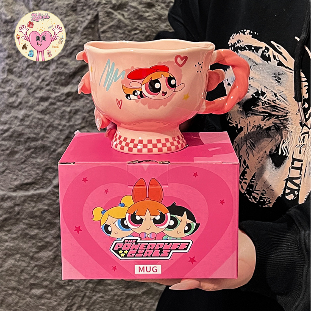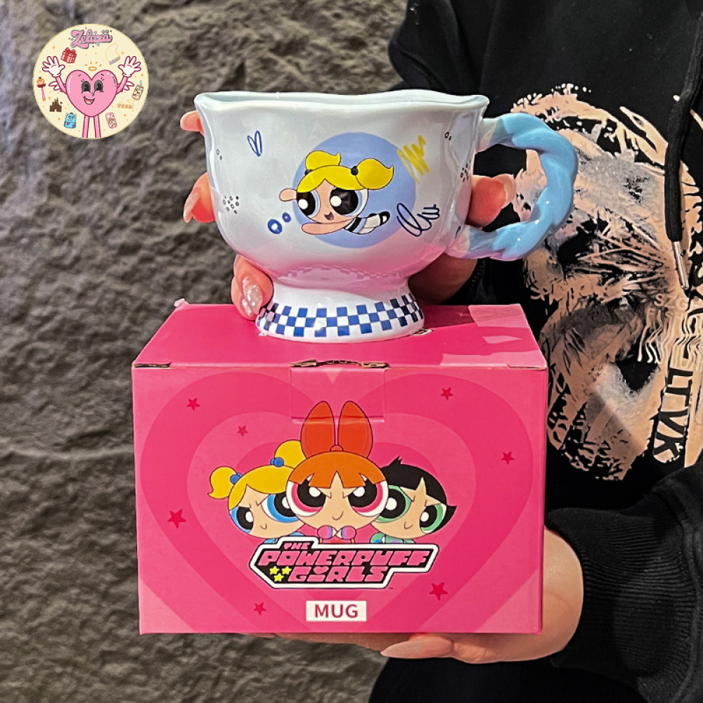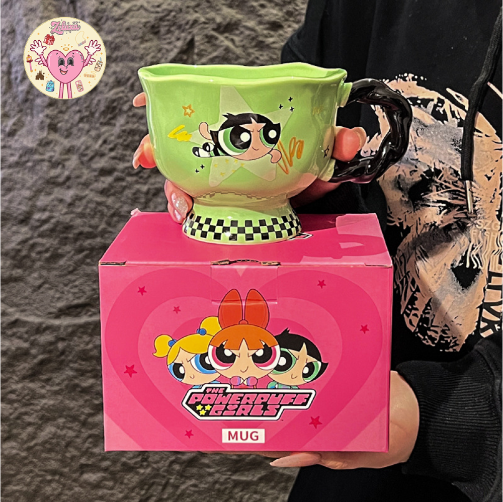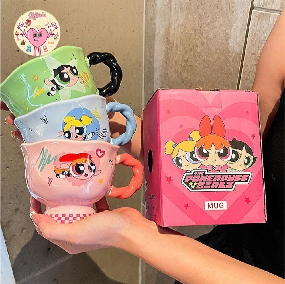 كوب ماء سيراميك عالي الجمال للفتيات من Powerpuff مع صندوق هدايا، كوب قهوة لطيف، كوب إفطار حليب، هدية عيد ميلاد